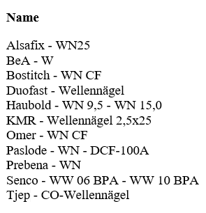 für Wellennägel Typ W in den Längen 9 mm, 12 mm und 15 mm
